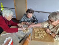 Jeudi 6 novembre 2025Ce matin a été consacré à «l’atelier Bredalas faits maison » que nous avons proposé, accompagnés d’un bon vin chaud, à tous les résidents après la messe de Noël ! | |||||||||||||||||||||||||||||